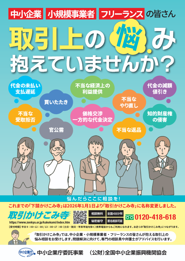 【全国中小企業振興機関協会WEBサイト「取引かけこみ寺」ページ(外部リンク)】